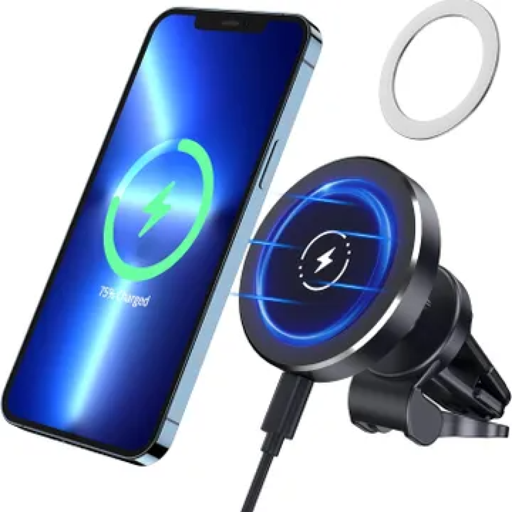 - تصميم مرن يتيح لك استخدامه كحامل هاتف أو شاحن لاسلكي في نفس الوقت.